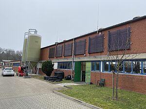 Zudem wurde eine hocheffiziente Vakuumröhren-Solarthermie-Anlage installiert, dessen Wärmeertrag im Sommer den Energiebedarf der Warmwasserbereitung decken soll. Beide Anlagen nutzen einen gemeinsamen Heizwasserspeicher.